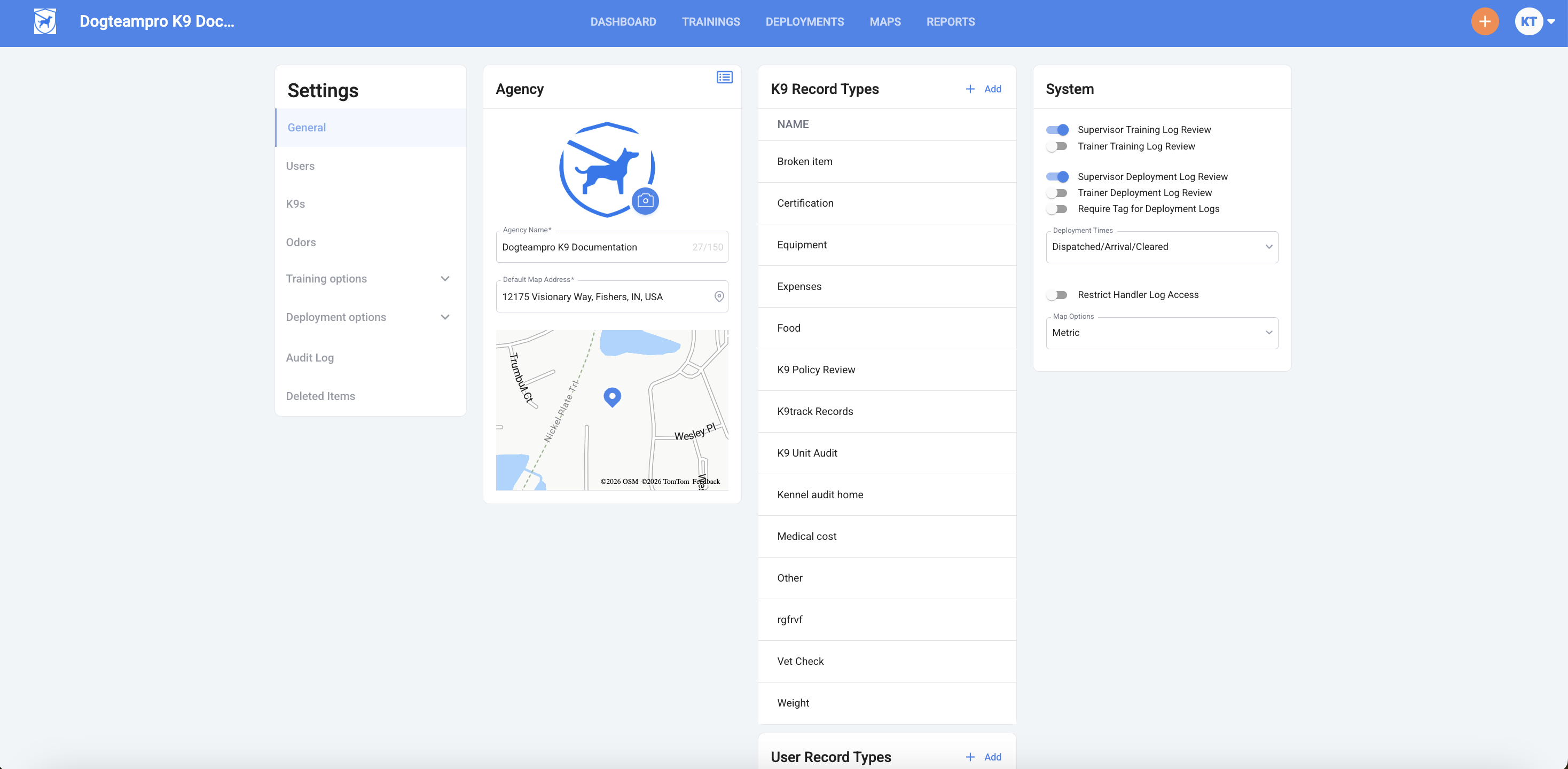 Note: Most admins use their agency's address or a common training location as the default map location.