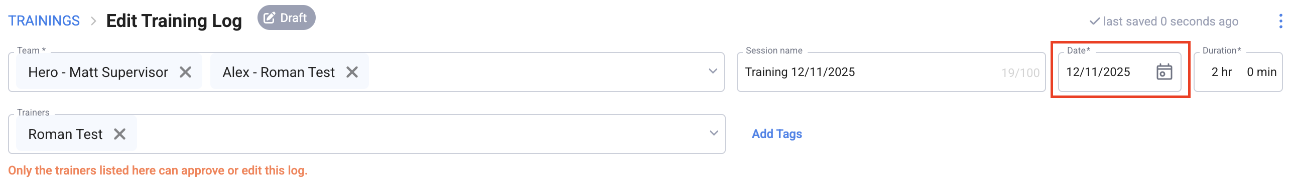 Note: The creator of the log and any trainers added to the log will be able to edit the log at any point before the training begins.